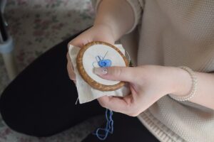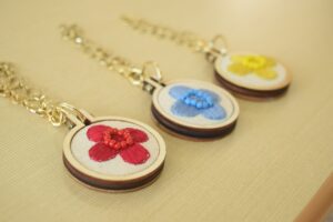刺繡飾りのキーホルダー作り
