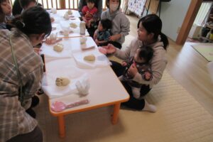 - 11月18日(火)パン作りを行いました。みんなニコニコで、ママと一緒にパン作り❕魚肉ソ...