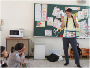 ベンジャミン先生と一緒に体を動かしながら英単語を発音したり、ハロウィンに関連した歌を歌ったり、アメリカでのハロウィンの過ごし方についても楽しく教えていただきました♪