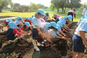 「見て!大きいよ!」「すごいねー⭐」っと採れたサツマイモを見て大興奮の子ども達でした🍠