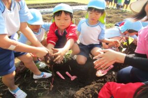 サツマイモの苗を植えて、大きくなるのを楽しみにしていた子ども達!