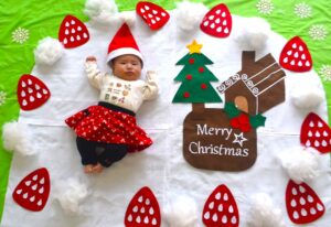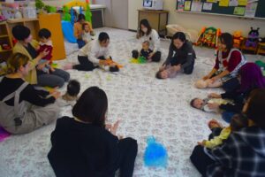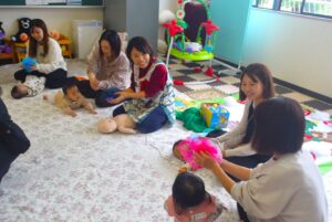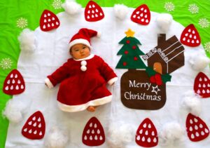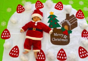 サンタさんの洋服を着て写真に写る子も多く、一足早いクリスマス気分を味わいました♪その後のベビーマッサージでは、ふれあい遊びや絵本の読み聞かせも親子で楽しんでいただきました☆