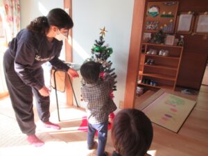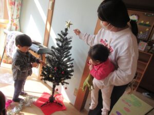 12月2日(火)ふれあい英語を行いました。クリスマスツリーの飾りつけを行ったり、「Hello!Reindeer」「Hello!Snowmann」「Hello!Santa」🎵と 歌を歌たり、クリスマスの絵本の読み聞かせを楽しみました🎄イルミネーションやクリスマスマーケット🎄楽しみたいですね🎵